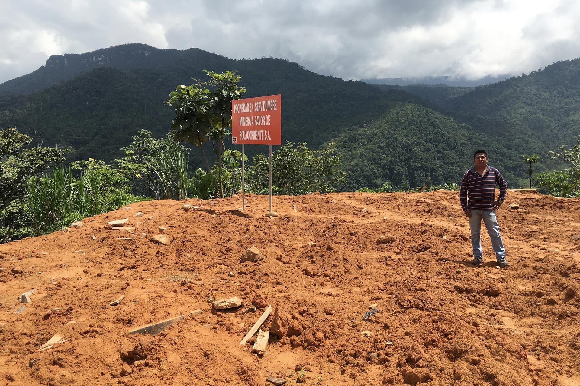Raúl Sanchez, a former resident of the region of Tundayme, shows the site of his parents house along the Cóndor road, which was demolished by state forces in December 2015.