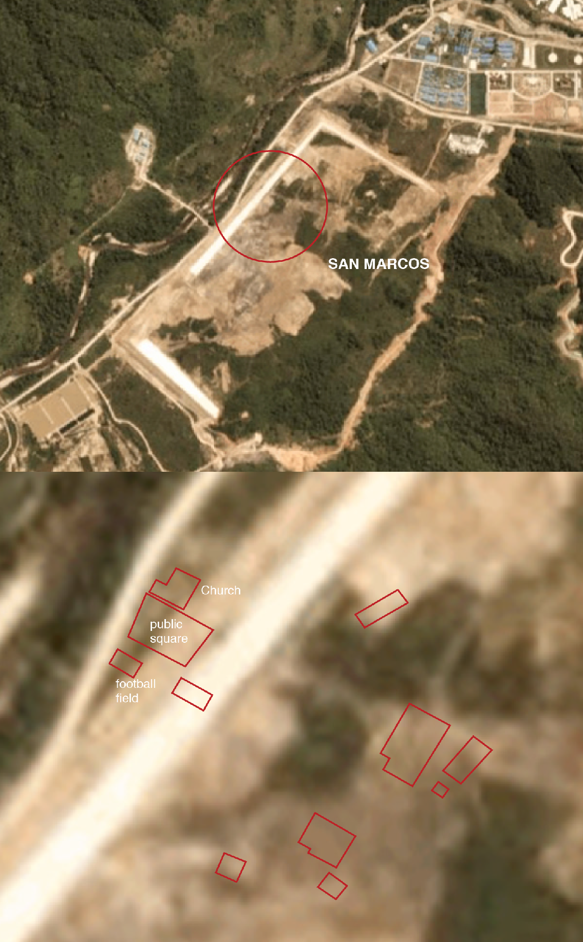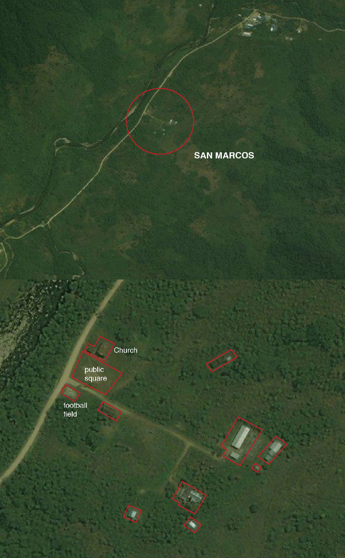 The history of San Marcos is significant because the village eventually became the epicenter of local resistance against the Mirador mega-mine. At least two families refused to leave the site, and in doing so protected the village from complete destruction, salvaging the church and the school. On 12 May 2014, without warning or judicial order, police forces and security guards of Ecuacorriente occupied the village with heavy machinery and evicted the families, razing houses, the church and the school to the ground.