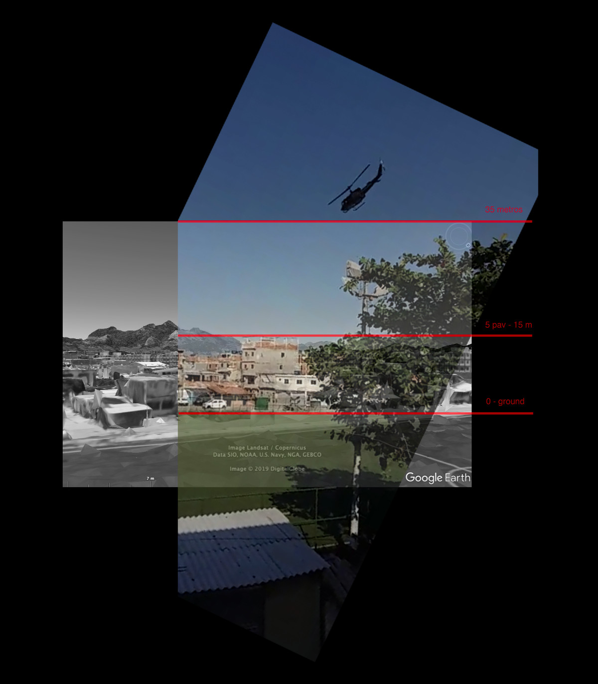 The use of helicopters as a shooting platform is one of the features of the extreme use of force present in this kind of operation. We have identified at least nine cases In the years of 2018 and 2019 where helicopters were used as a shooting platform in residential areas during police actions with evident characteristics of a "vengeance operation".
